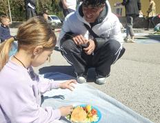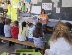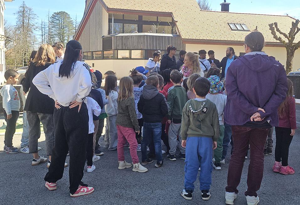 Jeudi 10 avril. Les élèves du Collège du Temple Fleurier rencontrent Mary Wenker autour du livre Hasan venu d'ailleurs. 3 Classes des enfants de 5e et 6e HP se montrent très intéressés par cet échange. La rencontre est suivie d'un repas aux saveurs afghanes, dégusté sur des couvertures installées dans la cour de l'école.