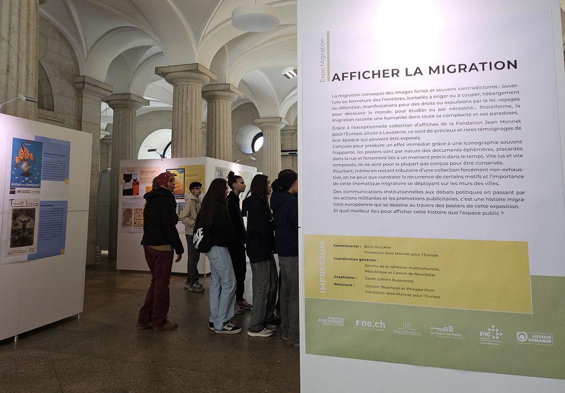 Du 16 au 19 mars, l’exposition « Afficher la migration » ( Conçue par la Fondation Jean Monnet ) a été visitée par les élèves du Lycée Denis-de-Rougemont ainsi que du Collège des Terreaux.