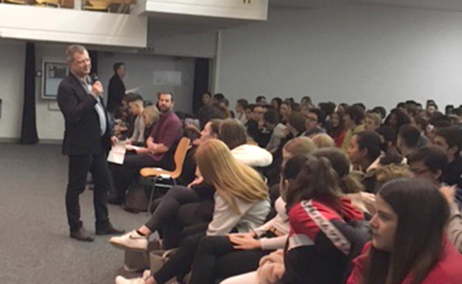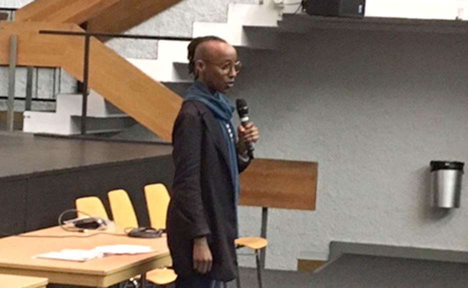 Conférence au collège du Mail, pour toutes les classes de 11e Harmos et du SEMO, durant la Semaine neuchâteloise d'actions contre le racisme, le vendredi 15 mars 2019.