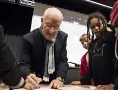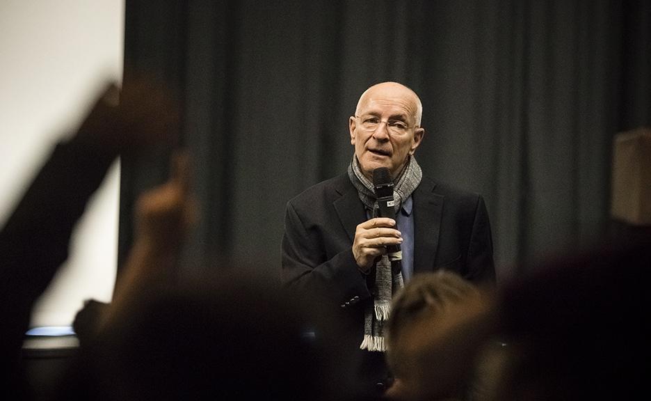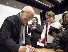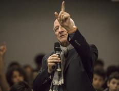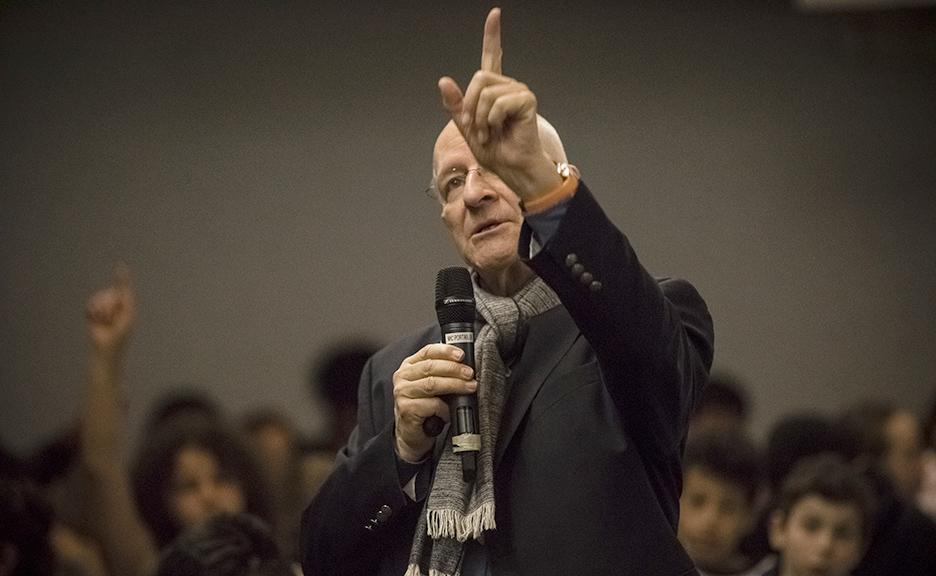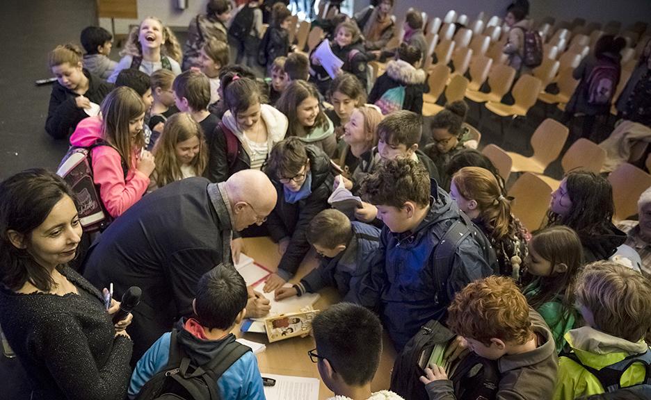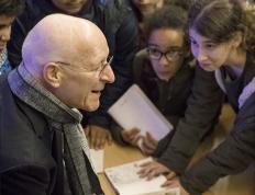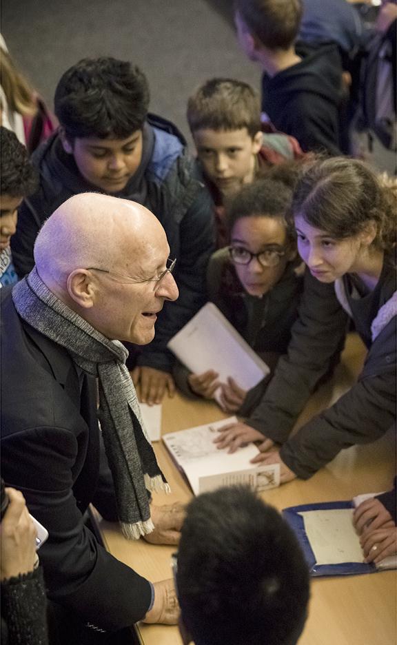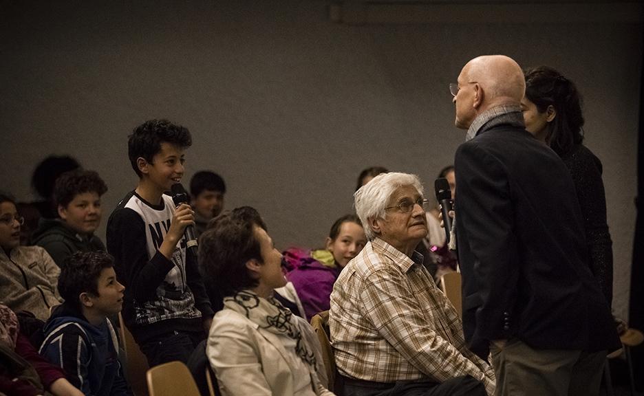 Astrophysicien et astronaute suisse, professeur honoraire EPFL. Seul astronaute suisse à être allé dans l’espace, il a effectué quatre missions à bord de différentes navettes, dont deux ont été consacrées à la réparation et à la maintenance du télescope spatial Hubble. Lors de la première mission, il était chargé du pilotage du bras télémanipulateur de la navette et à ce titre a effectué la première capture en orbite du télescope spatial. Photos. Guillaume Perret-Lundi 13 Collège du Mail, Neuchâtel, le 26 avril 2017