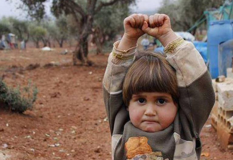 En une semaine, la photo d'une petite Syrienne regardant l'objectif les bras levés a bouleversé les Internautes, qui l'ont partagée des dizaines de milliers de fois sur