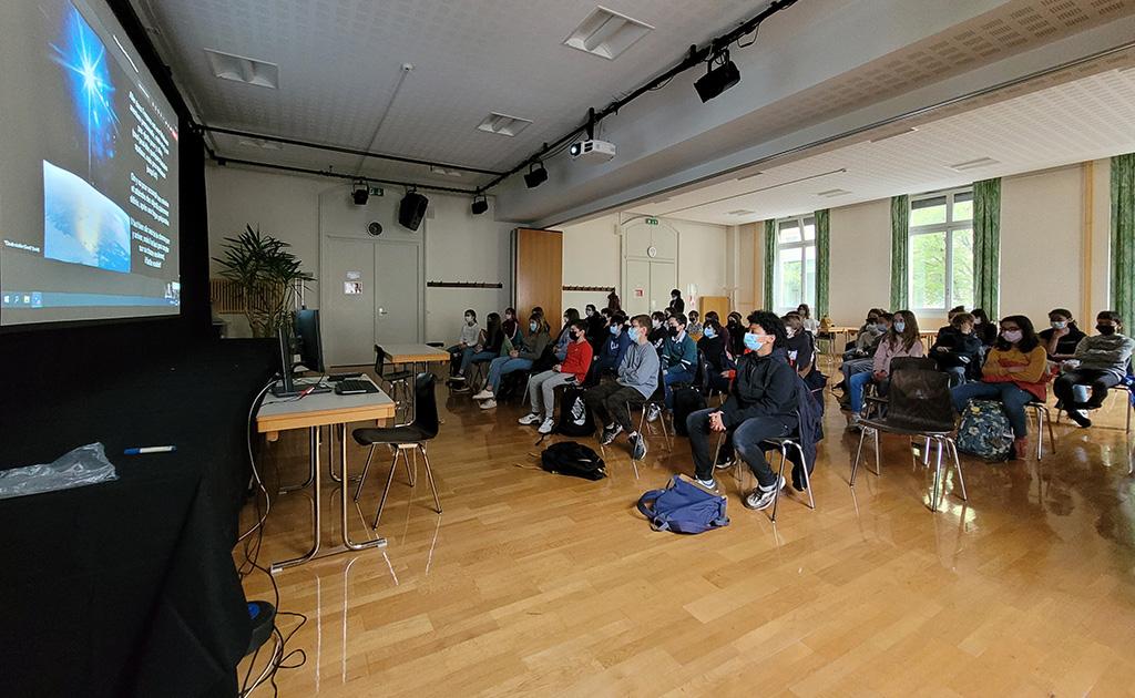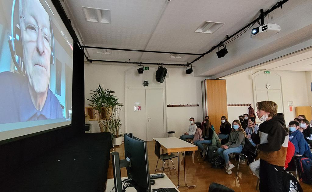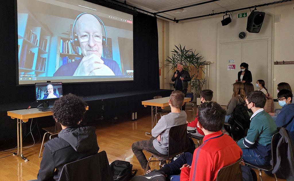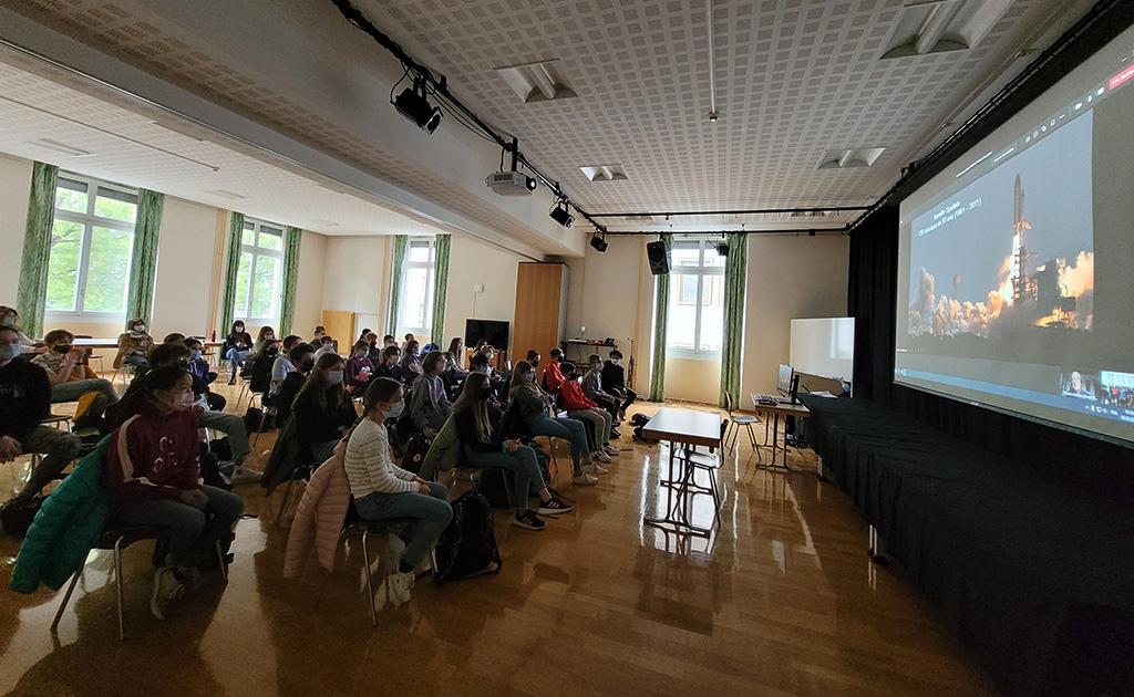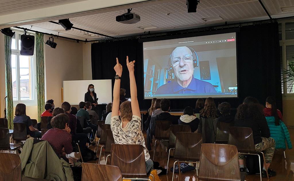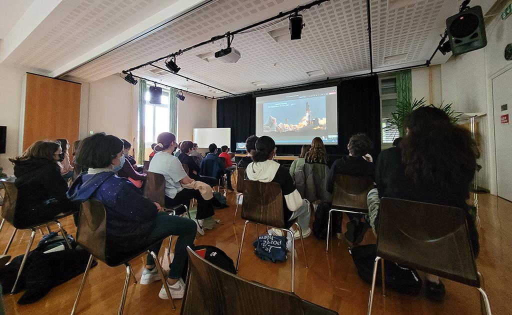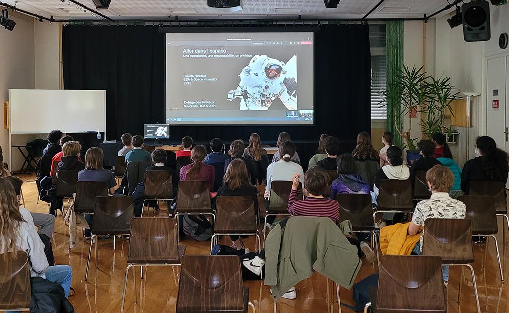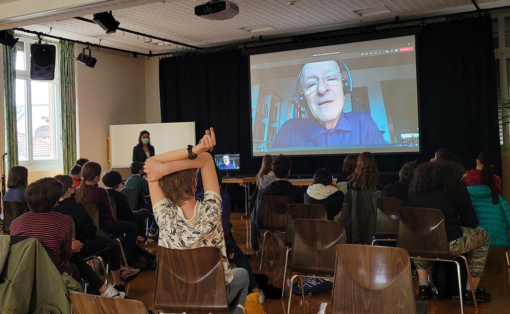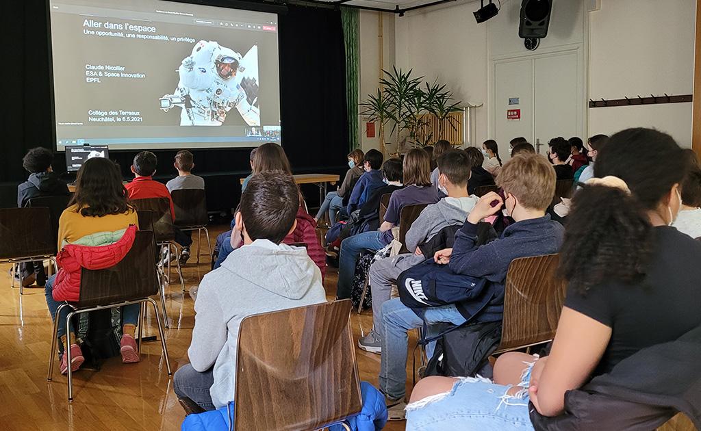 Claude Nicollier à la rencontre des élèves de 8e Harmos du collège de la Promenade, dans le cadre de la Semaine de l’Europe, le jeudi 6 Mai 2021. Cette conférence a été suivie le 11 mai par un programme proposé par la Lanterne magique au Cinéma Apollo, Salle 1 (Faubourg du Lac 21). Un voyage vers l’espace accompagné par Vincent Adatte : "Le cinéma à la conquête de l’espace", ou comment les cinéastes ont su représenter l’espace et sa conquête. Du pionnier Georges Méliès avec son célèbre «Voyage dans la Lune» (1907) à Georges Lucas («La Guerre des étoiles»), en passant par Stanley Kubrick («2001, Odyssée de l’espace», Pixar («Wall-E») et tant d’autres, nous sera conté le grand récit cinématographique de l’aventure spatiale vers «l’infini» et au-delà». Commenté, ce montage d’extraits de films emblématiques du genre sera suivi par une projection de courts-métrages d’animation «clin d’œil» sur le même thème.