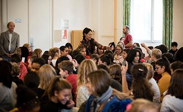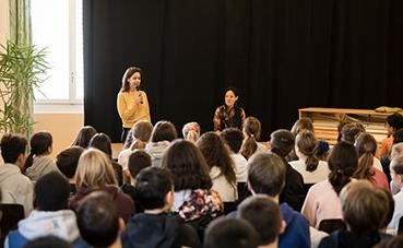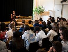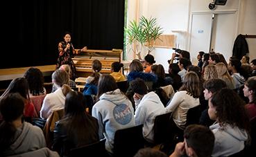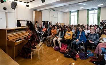 H. J. Lim, pianiste sud-coréenne, présidente d’honneur de l’association Graine de génie-citoyen, donnait une conférence au collège des Terreaux de Neuchâtel, pour toutes les classes de 9ème Harmos, le 5 novembre 2019. Devant plus d’une centaine d’élèves et durant plus d’une heure, H.J. Lim témoigna de son parcours de vie, de sa passion pour le piano et joua quelques morceaux avant de répondre aux nombreuses questions des élèves.