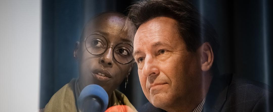 Blandine Karebwayire, rescapée du génocide des Tutsis au Rwanda et Alain Ribaux (conseiller d’Etat en charge de la culture du Canton de Neuchâtel), qui fût juge au Tribunal pénal international pour le Rwanda. Entre le 7 avril 1994 et le 17 juillet 1994, près d’un million de Tustis & Hutus modérés en majorité tutsi étaient massacrés. Le déclencheur de ce génocide a été l’assassinat au soir du 6 avril 1994 du président rwandais Juvénal Habyarimana, un Hutu. L’avion qui le transportait a été abattu par un missile. Le lendemain, les forces armées rwandaises (FAR) et les miliciens extrémistes hutus donnaient le signal des massacres.