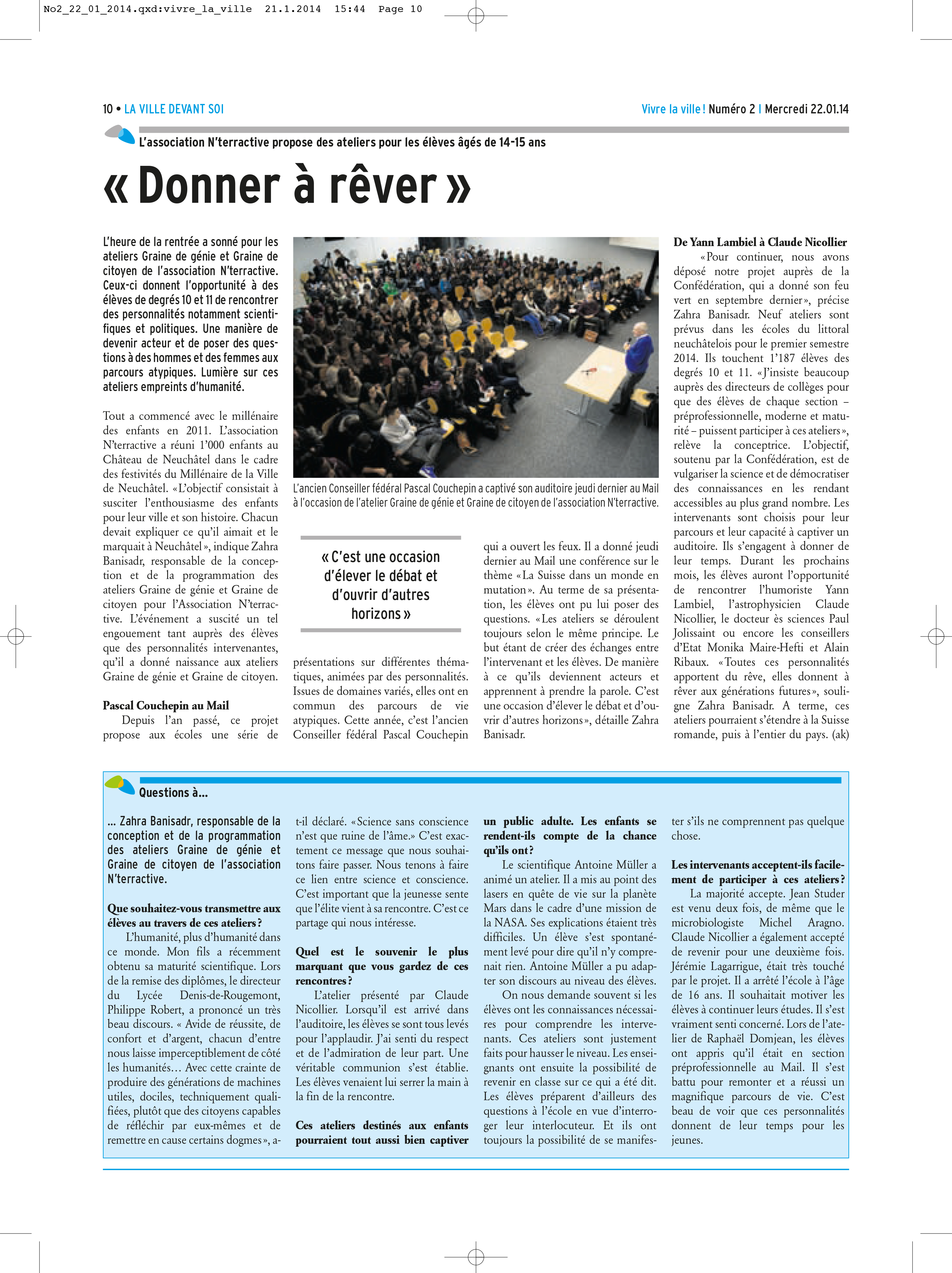 Les ateliers Graine de génie et Graine de citoyen donnent l'opportunité à des élèves de degrés 10 et 11 de rencontrer des personnalités notamment scientifiques et politiques.