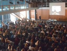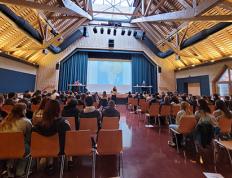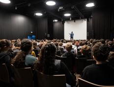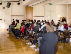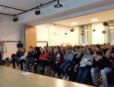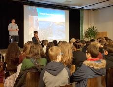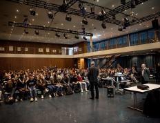 19 mars: 230 collégiens et collégiennes de 10e et 11e de Fleurier à la conférence de Blandine Karebwayire et Alain Ribauxsur sur le génocide des Tutsi au Rwanda . Semaine neuchâteloise d'actions contre le racisme. Photo © Guillaume Perret