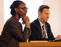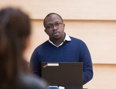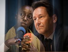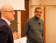 21 mars: Rencontre autour du livre: Le pays de Rêve avec David Diop à l’institut de langue et civilisation françaises. Avec Loris Petris, directeur de l’institut et doyen de la faculté des sciences humaines de l’Université de Neuchâtel. © Guillaume Perret