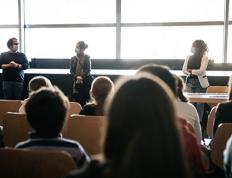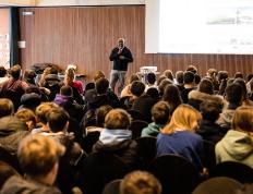 Conférence sur la thématique du football à l'épreuve du racisme au collège du Mail, dans le cadre de la Semaine neuchâteloise d'actions contre le racisme, le lundi 18 mars 2019.