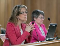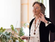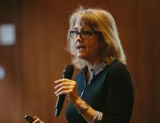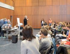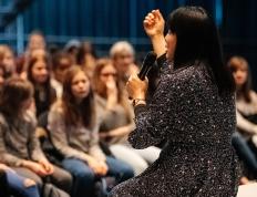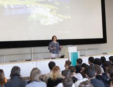 Nicole Baur au collège du Landeron, le 20 mai 2016: "Inciter les filles à occuper l'espace public, à s'y investir, à oser les sciences, à oser l'entrepreneuriat".