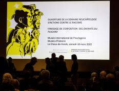 Ouverture officielle de la 28e édition de la semaine neuchâteloise d'actions contre le racisme au Musée de l'horlogerie, La Chaux-de-Fonds, le 18 mars 2023. Photos@Guillaume Perret.