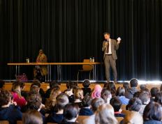 Thomas Facchinetti au collège du Landeron, le 29 avril 2016.