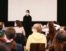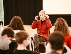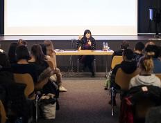 Rencontre animée par Eva Baehler, spécialiste de littératures francophone et postcoloniale, pour les élèves du Lycée Jean Piaget, à l'aula des Jeunes Rives, Université de Neuchâtel. Photos@Guillaume Perret.