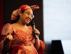 Présidente d'honneur de l'association Graine de génie Graine de citoyen et marraine de la Semaine neuchâteloise d'actions contre le racisme, 2018, H.J.