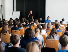 Alexandre Mayer, Chef d'orchestre de l'Ensemble symphonique neuchâtelois (ESN) a inauguré le 6 décembre notre programmation 2018, en échangeant avec les élèves de 10ème Harmos du Collège des Terreaux.