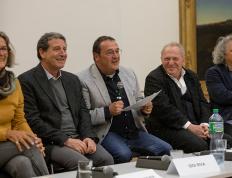 4 avril - Le journaliste italien Gigi Riva participe à la visite commentée de l’exposition Ciao Italia par Marc Perrenoud, ce mardi au lycée Jean-Piaget.