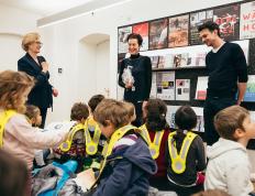 Les enfants de l'English Montessori School accueillis au Centre Dürrenmatt Neuchâtel, pour une visite spéciale commentée par l'artiste Sébastien Verdon. Friedrich Dürrenmatt s’est passionné pour l'astronomie et la cosmologie depuis son enfance.