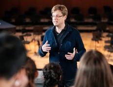 Le 22 mai dernier, Alexandre Mayer, Chef d'orchestre de l'Ensemble Symphonique Neuchâtelois (ESN) a renconté au Temple du Bas, les élèves de deux classes de 10e du Collège des Terreaux.