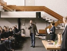 Le racisme au XXIe siècle. Conférence de Gigi Riva, journaliste, éditorialiste de l'Espresso et de la Repubblica, au lycée Blaise Cendrars de la Chaux-de-Fonds, dans le cadre de la Semaine neuchâteloise d'actions contre le racisme.