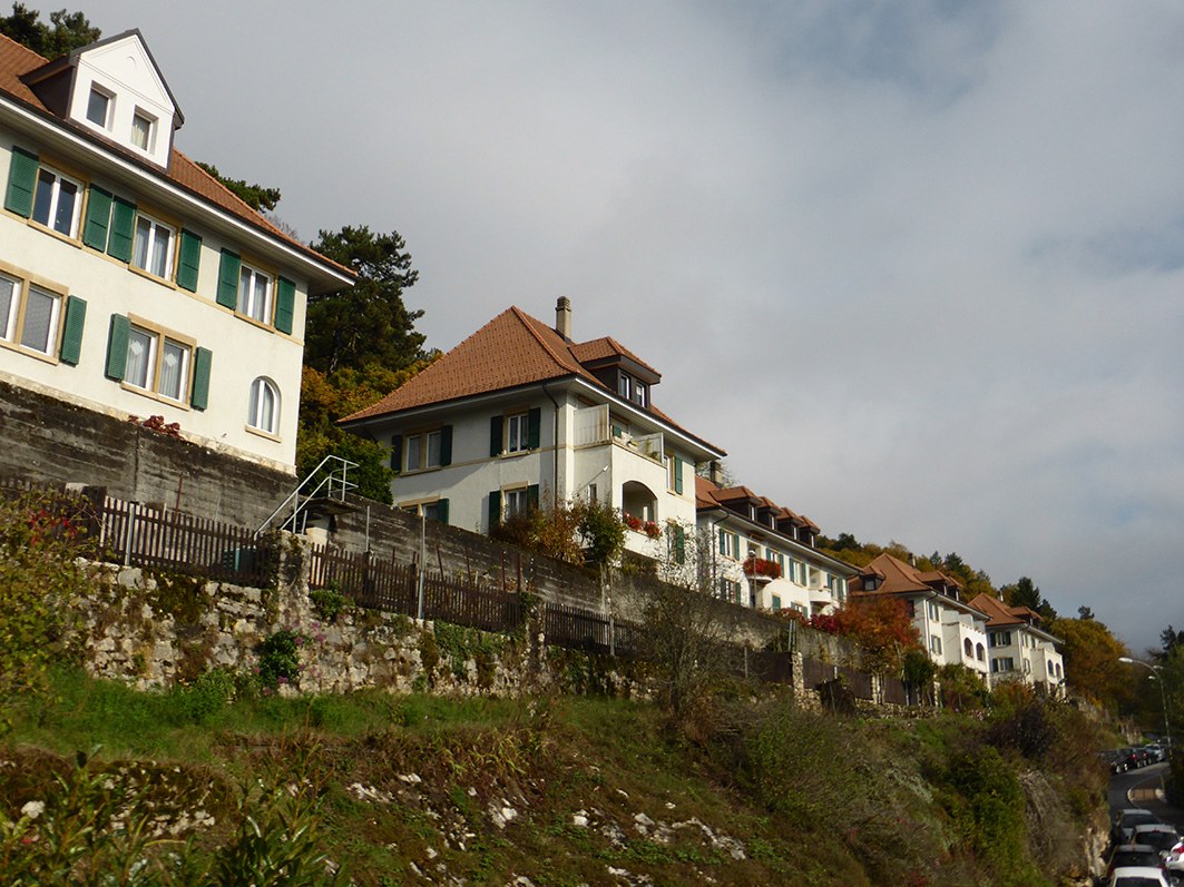Au nord d'un modeste chemin forestier à l'est de la Roche de l'Ermitage (le bien nommé chemin des Petits-Chênes, car il jouxte une forêt de chênes rabougris, poussant sur la roche presque à nu), on construisit au début des années 1920 (architectes de Bosset et Martin) une série d’habitations destinées essentiellement aux employés des chemins de fer. Et le chemin devint rue. Par la suite, une seconde série de maisons de style identique furent construites au sud par la caisse de pensions de la Ville. Des maisons cossues, solidement implantées sur le rocher, entourées de petits potagers amoureusement entretenus par leurs habitants. Des maisons à la taille de l’homme: deux à quatre appartements chacune, avec balcon et cave. Il y avait aussi des « chambres hautes » : vu le revenu modeste des habitants, on ne pouvait décemment pas les qualifier de « chambres de bonnes » ! Ces pièces mansardées étaient les hauts lieux de nos jeux enfantins : quel endroit idéal pour installer un train électrique !